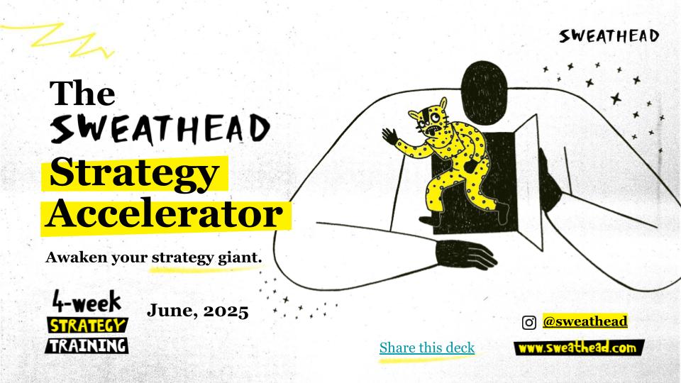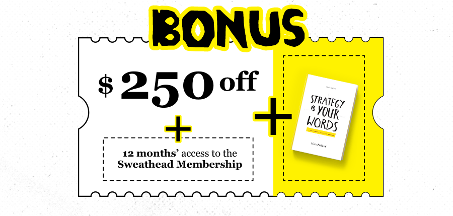 But I also host the Sweathead podcast and community and I’ve taught strategy to thousands of people around the world.