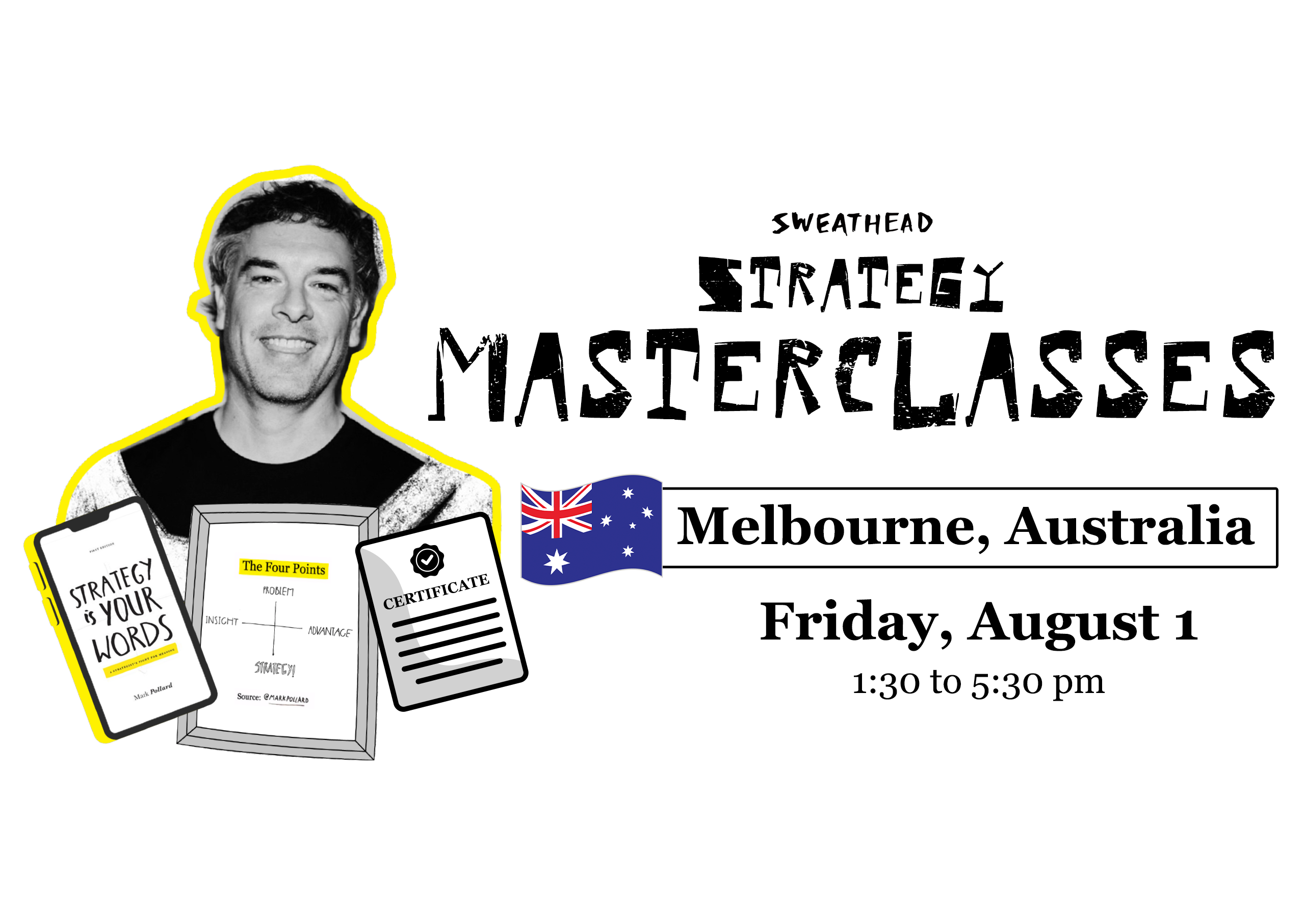 Learn and practice the most fun parts of advertising strategy with Sweathead CEO and author of “Strategy Is Your Words” Mark Pollard.